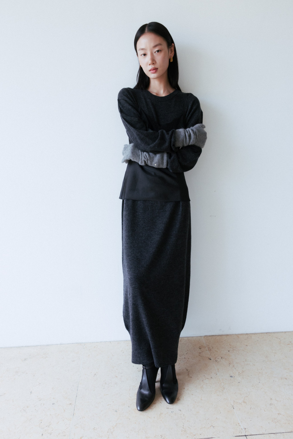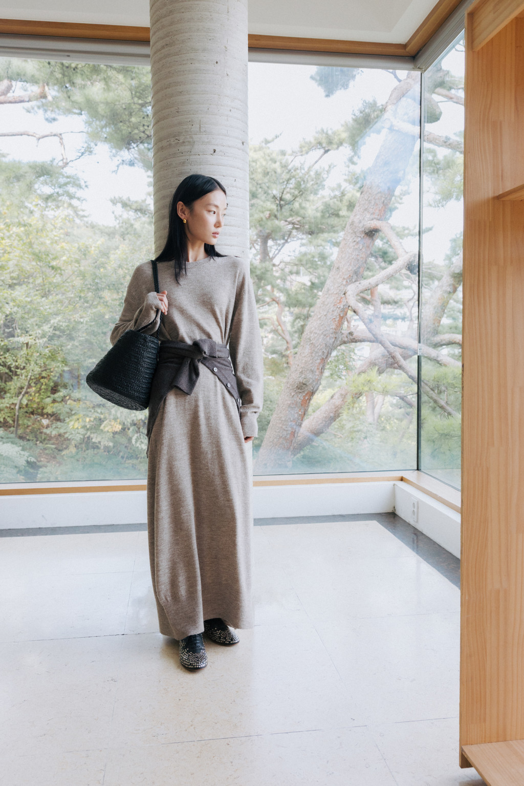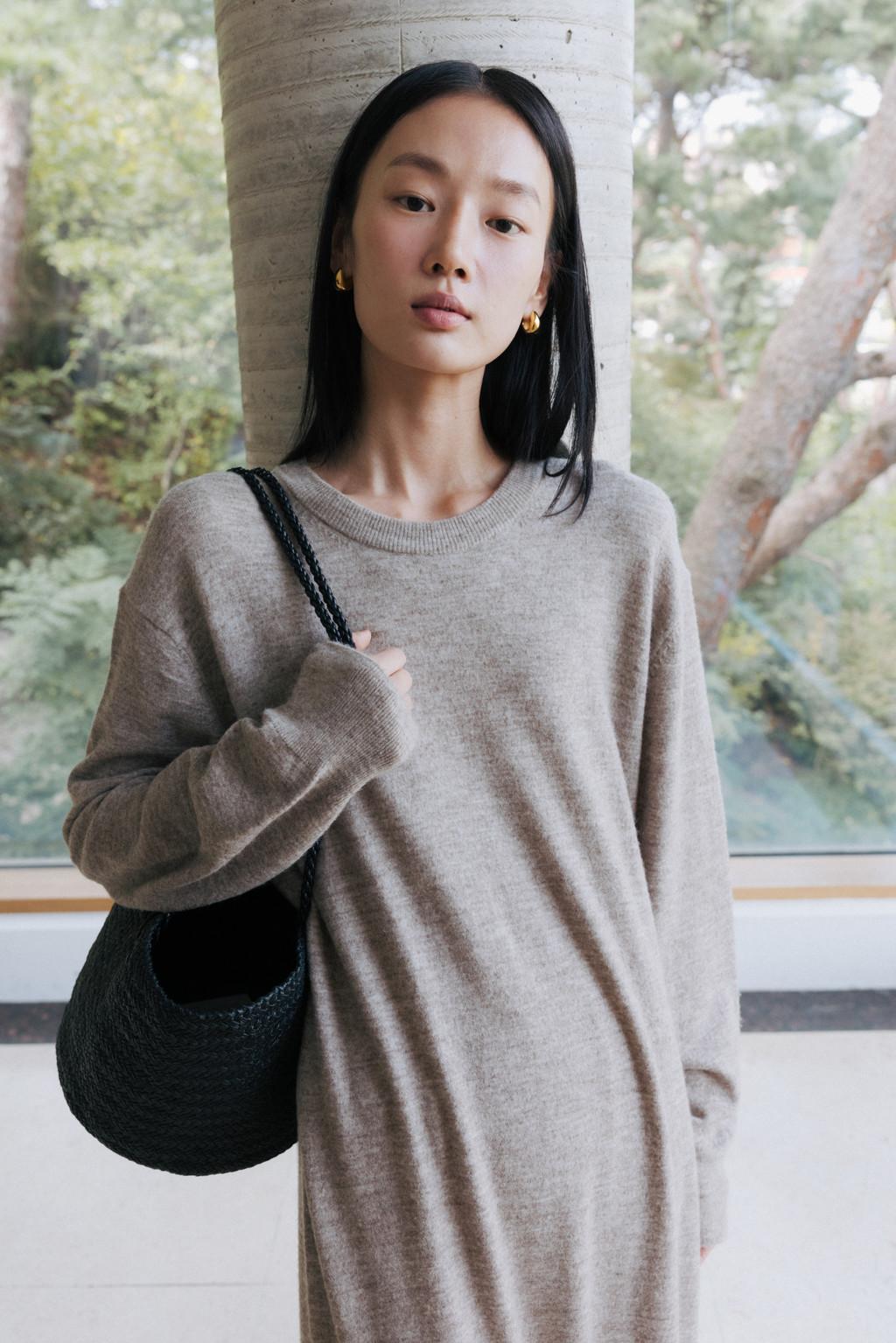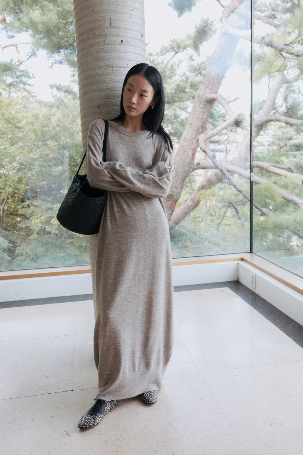 This maxi-length knit dress is crafted from a soft alpaca and wool blend with a subtle hairy texture. Its soft and cozy feel will keep you warm even in the dead of winter, and the simple, round neck design creates a refined silhouette.