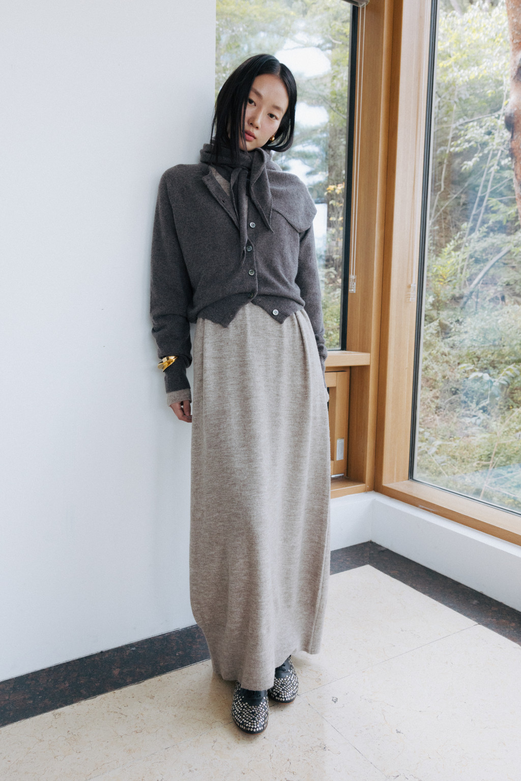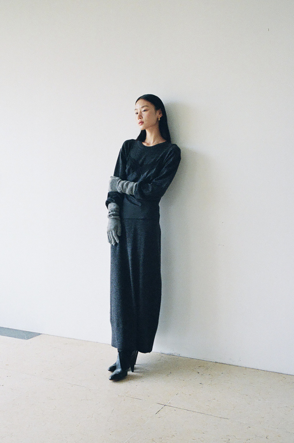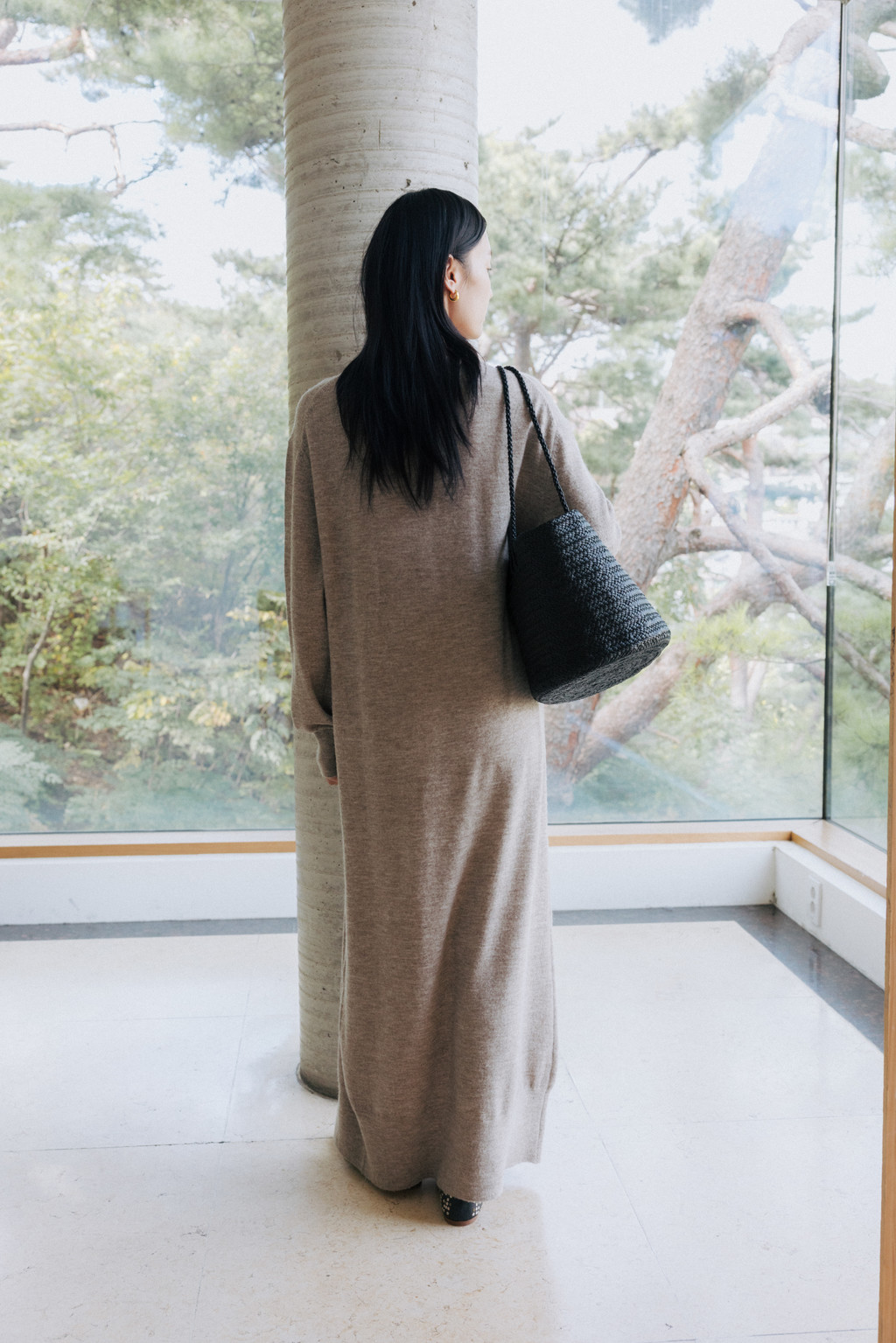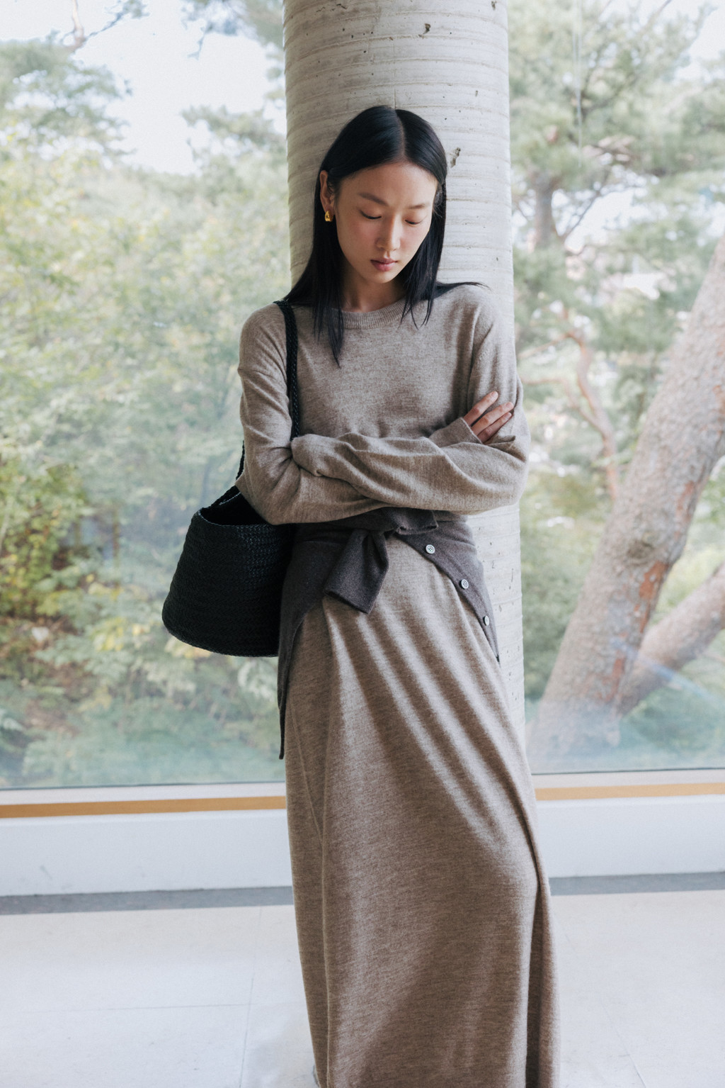 This maxi-length knit dress is crafted from a soft alpaca and wool blend with a subtle hairy texture. Its soft and cozy feel will keep you warm even in the dead of winter, and the simple, round neck design creates a refined silhouette.