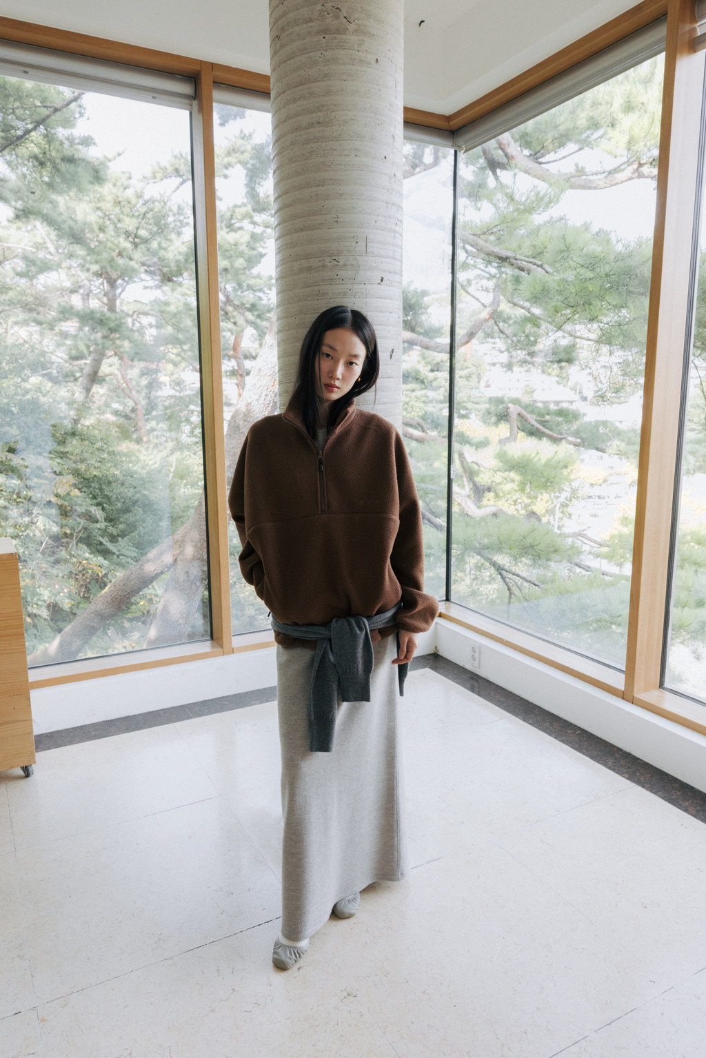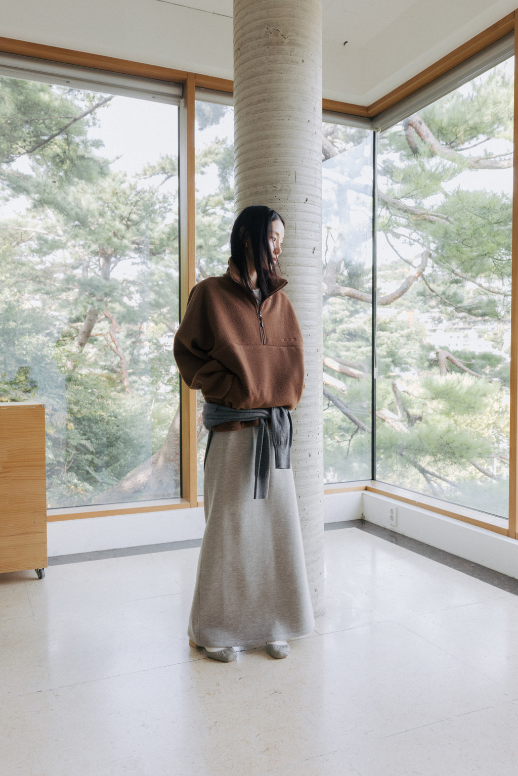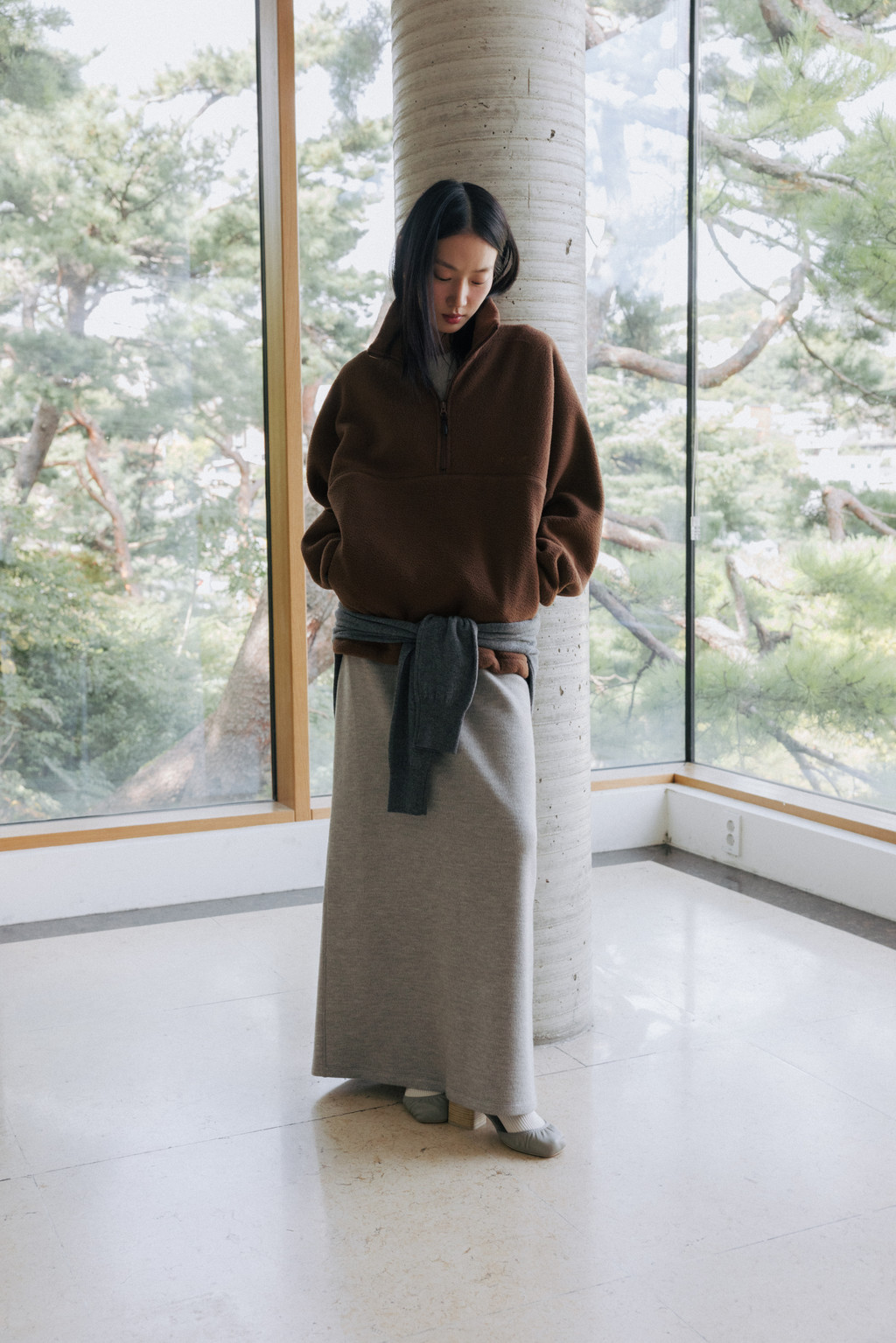Crafted from a thick, ribbed jersey knit, this lounge skirt is perfect for colder days. Featuring a long, H-line silhouette that follows the body's natural curves and excellent elasticity, it's comfortable to wear regardless of body type. The elasticated waistband ensures easy on and off, and the back slit allows for easy movement.