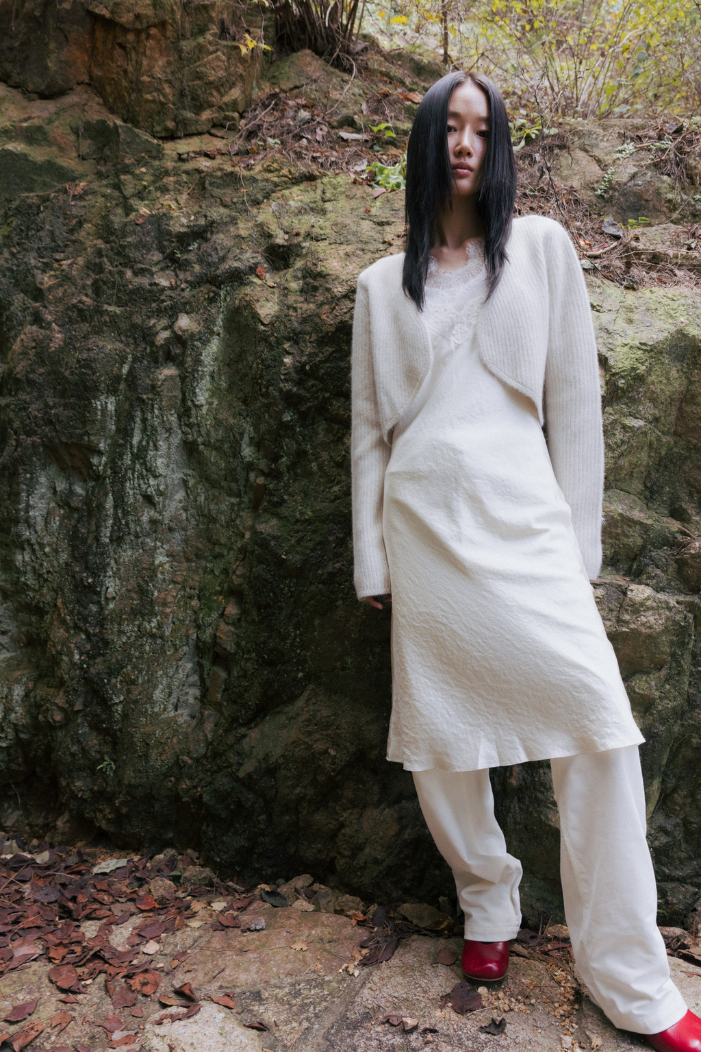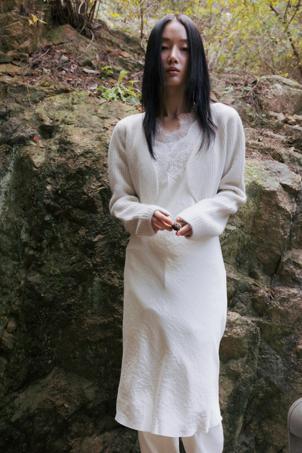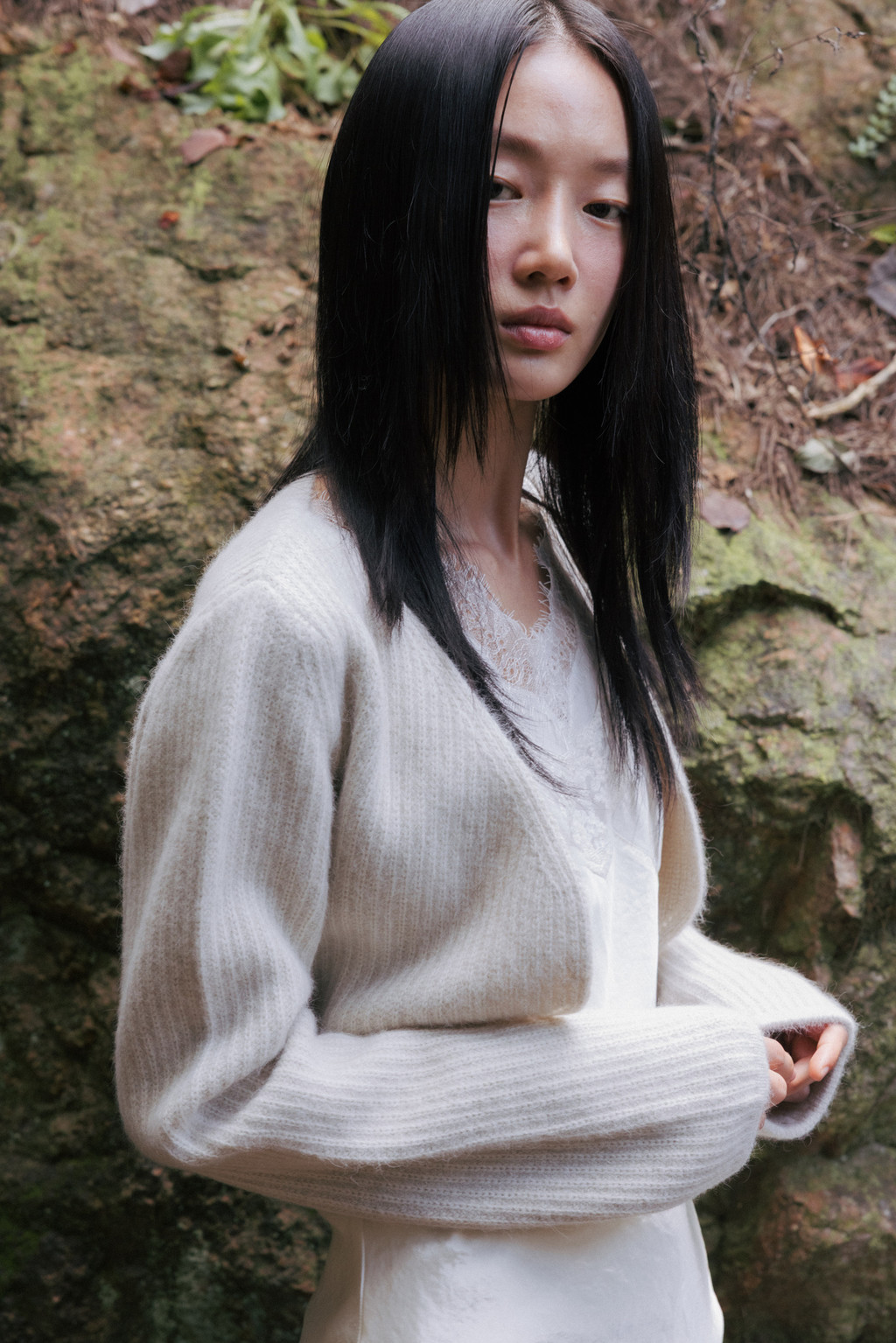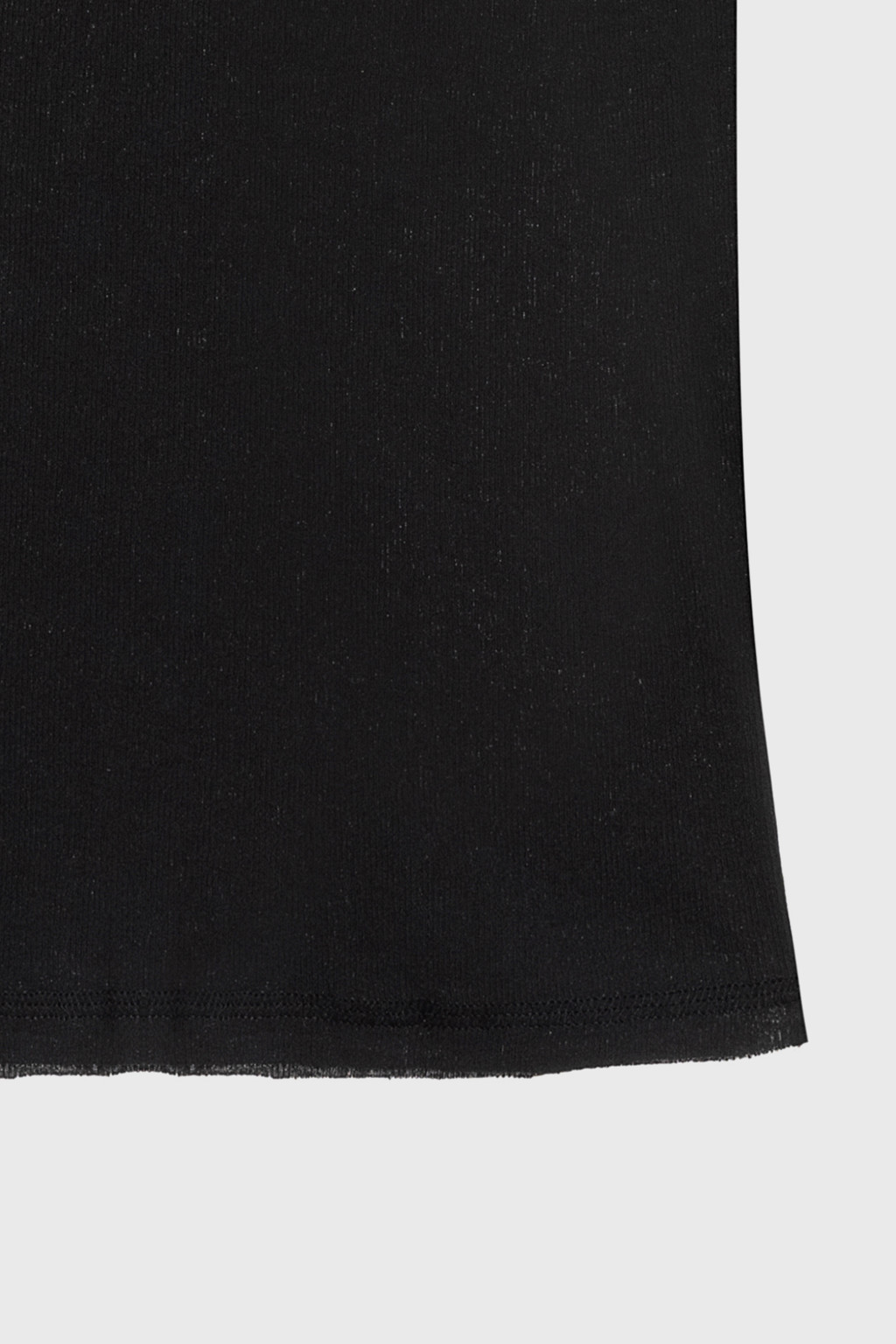 This sleeveless top is made from a thin, stretchy ribbed jersey fabric that gently hugs the body for a comfortable fit. Delicate floral lace trimming along the V-neckline adds a refined, lingerie-inspired touch. It’s an innerwear-style piece that’s perfect for light layering under shirts or jackets.