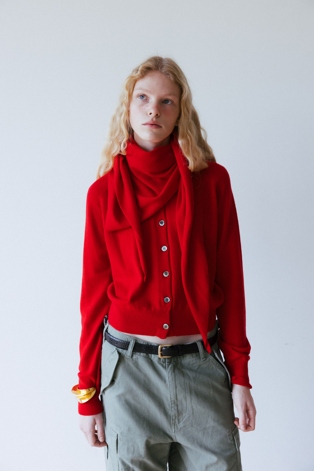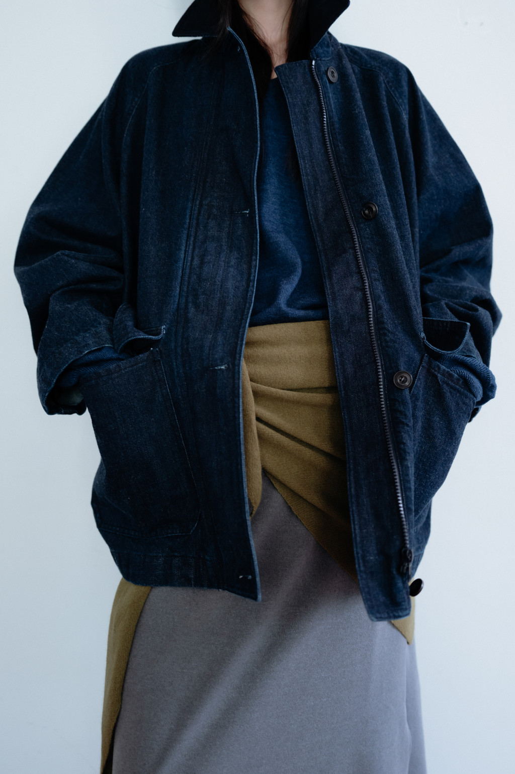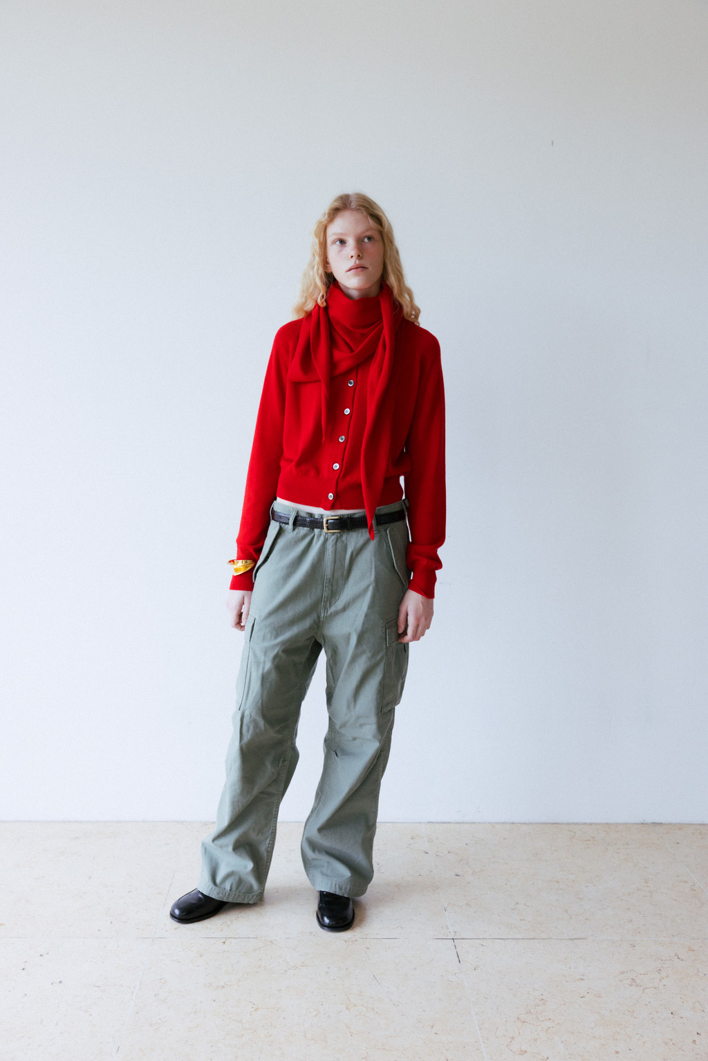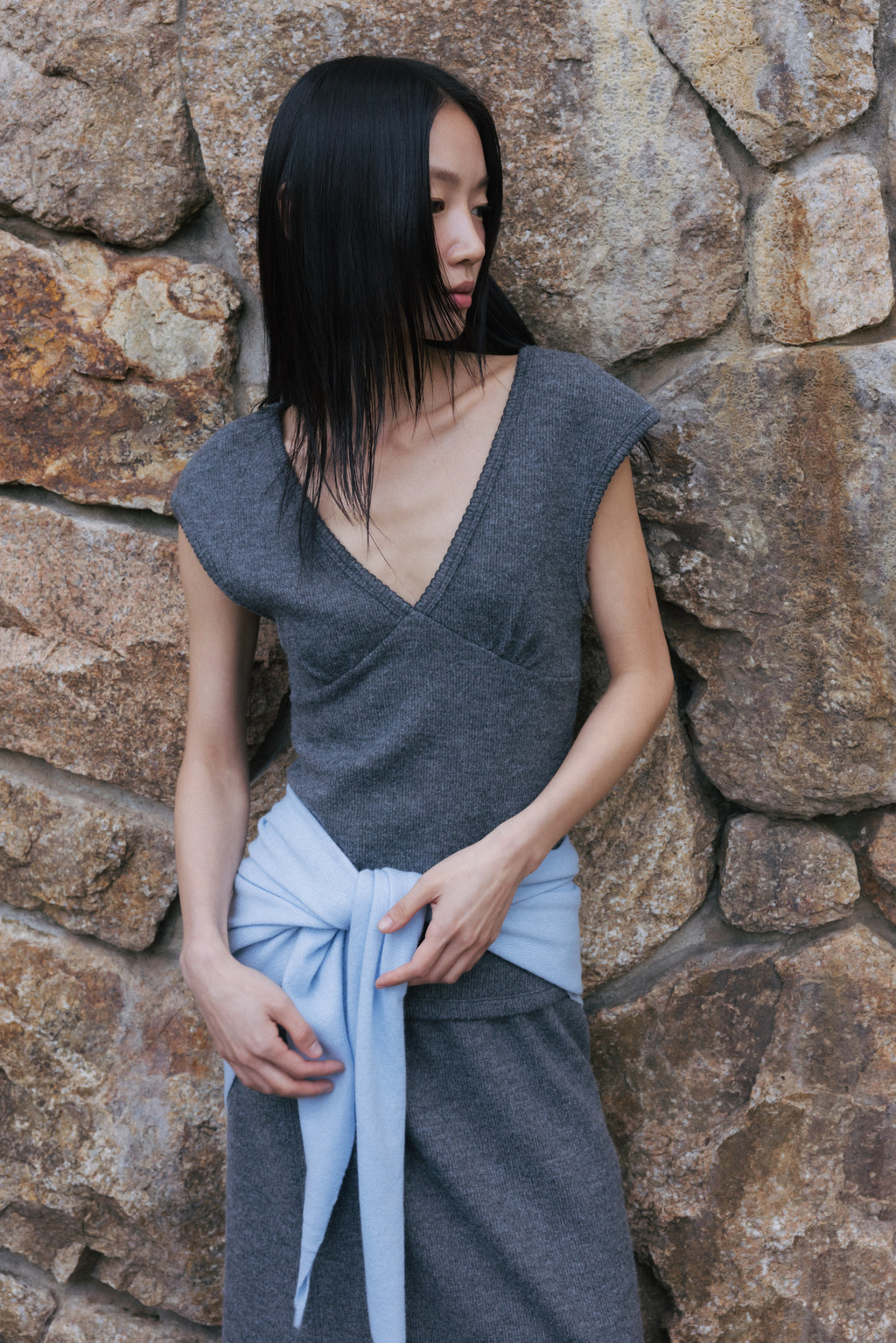 This triangular scarf is crafted from a soft cashmere blend. It boasts the signature lightness and warmth of cashmere, and its moderate thickness ensures warmth even in the dead of winter. Simply draped over the scarf creates a statement piece, making it a versatile piece to pair with a variety of outerwear.